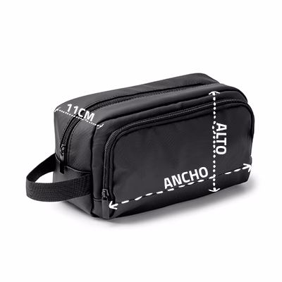 Ideal para organizar artículos de aseo personal de manera segura y elegante. Incluye asa de transporte.