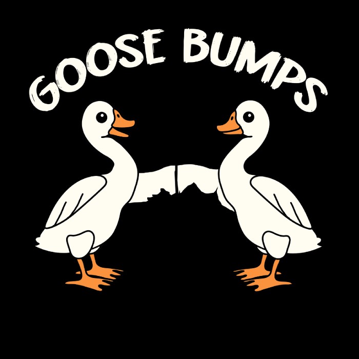 Regalo original sobre Goose bumps. Camisetas, sudaderas, pegatinas / stickers, gorras, mochilas, bolsas, totebag, paraguas, tazas, cojines, y alfombrillas con el diseño Goose bumps. Perfecto para regalo de cumpleaños, día del padre / madre, eventos, fiestas, navidad, etc.