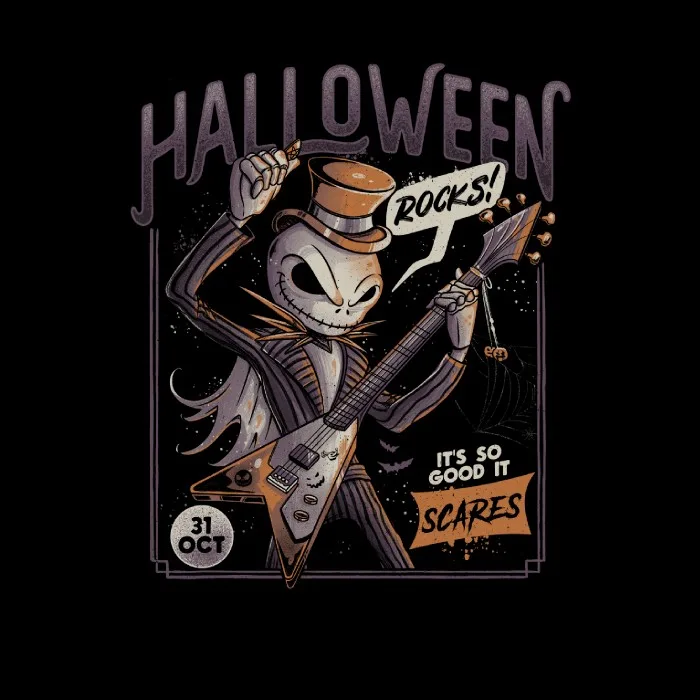 El diseño "Halloween Rocks" está creado por un artista independiente. No es una imagen con licencia oficial, si no un fanart o arte original.