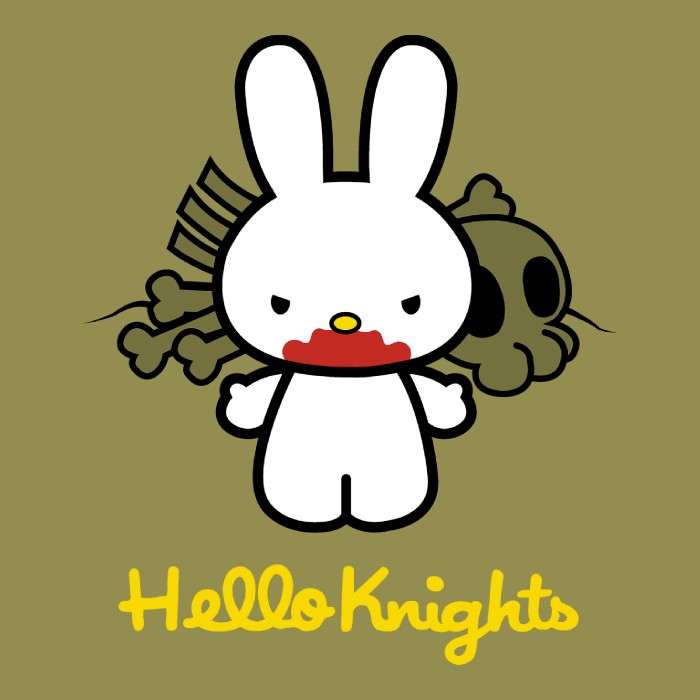 El diseño "Hello knights" está creado por un artista independiente. No es una imagen con licencia oficial, si no un fanart o arte original.