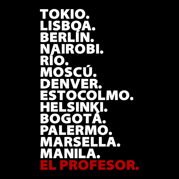 LaCDPapel copia está relacionado con: Bella Ciao, Berlín, La Casa De Papel, Máscara, Nairobi, Profesor, Tokio