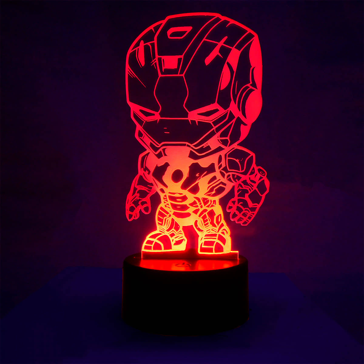 Lámpara de metacrilato con base LED de Iron Man