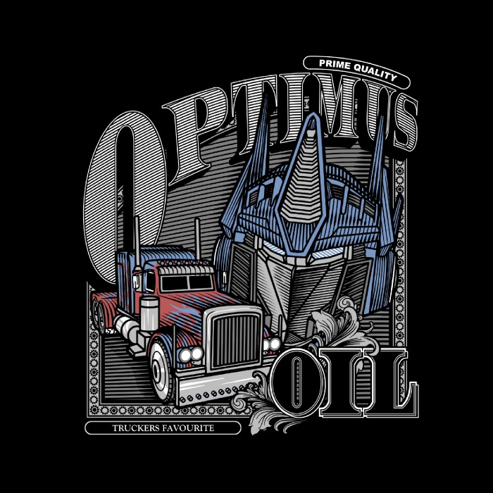 El diseño "Optimus Oil" está creado por un artista independiente. No es una imagen con licencia oficial, si no un fanart o arte original.