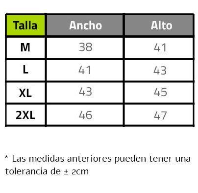 • Tejido transpirable de fácil lavado y secado.