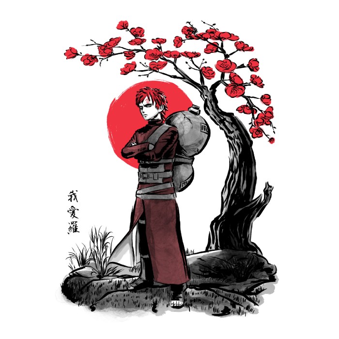 El diseño "Red sun samurai" está creado por un artista independiente. No es una imagen con licencia oficial, si no un fanart o arte original.