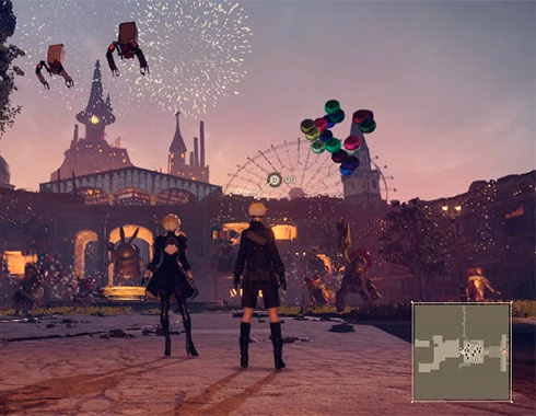 Nier: Automata es un juego de rol y acción ambientado en un mundo abierto postapocalíptico. Los jugadores pueden explorar a pie, combatir en escenarios aéreos con mecas voladores, o incluso invocar animales salvajes para desplazarse. El mundo está lleno de personajes no jugables que ofrecen misiones secundarias, y en las ciudades o campamentos se pueden comprar objetos, como consumibles para recuperar salud.