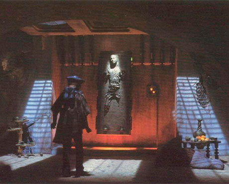 Esclavo I, propiedad de Boba Fett, que es transportado a Tatooine. Antes de ser congelado, Han revela sus sentimientos por Leia, a quien confiesa que, efectivamente, está enamorado de Solo.