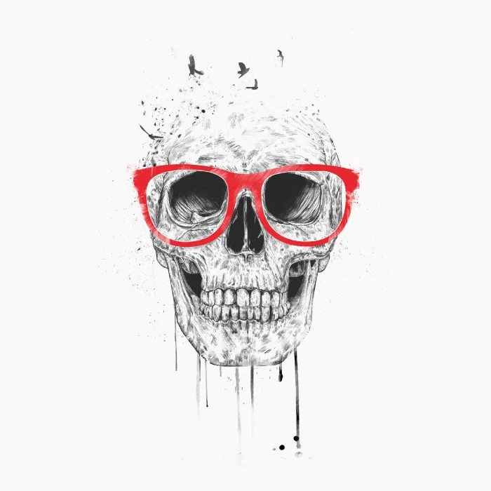 El diseño "Skull With Red Glasses" está creado por un artista independiente. No es una imagen con licencia oficial, si no un fanart o arte original.