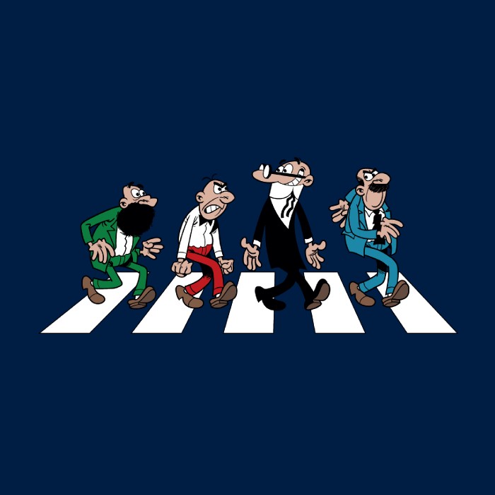 TIA road está relacionado con: Cómic, Crossover, Filemon, Mortadelo, Mortadelo y Filemon, Parodia, Pop, Rock, The Beatles