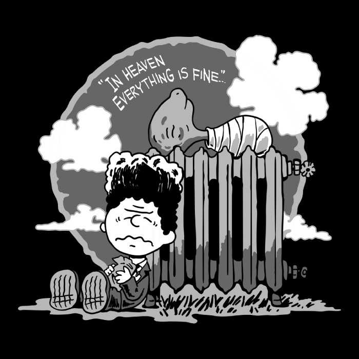 To snoop white shirt está relacionado con: Crossover, Hamlet, Parodia, Snoopy, William Shakespeare